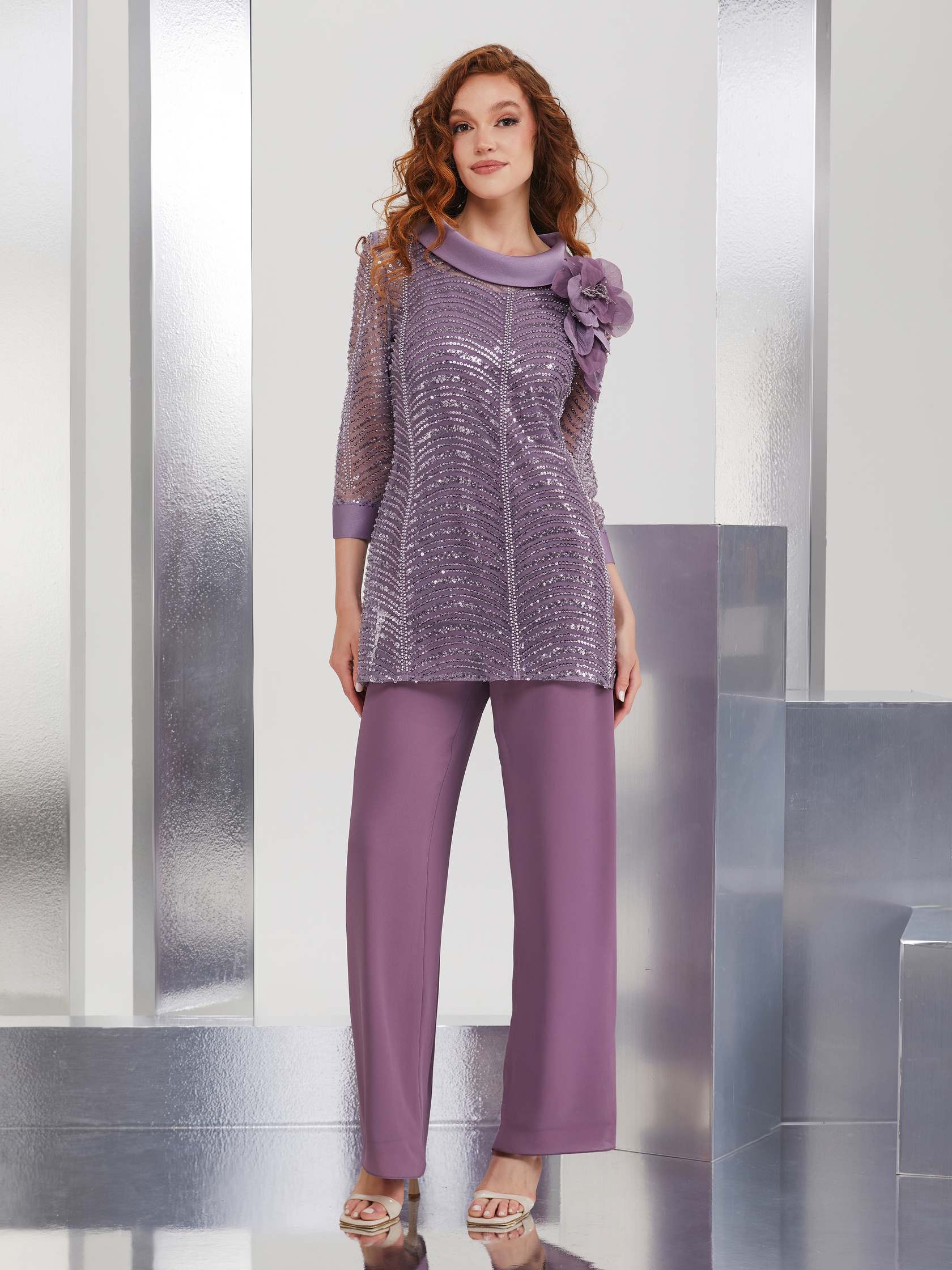 Abito cerimonia in georgette e paillettes