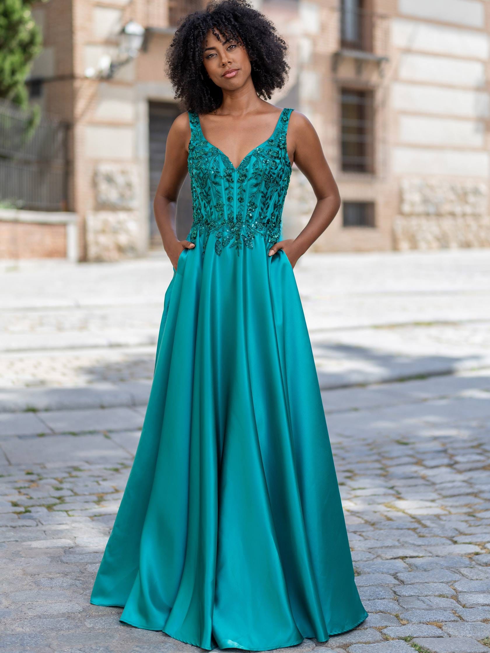 Abito cerimonia in paillettes e raso